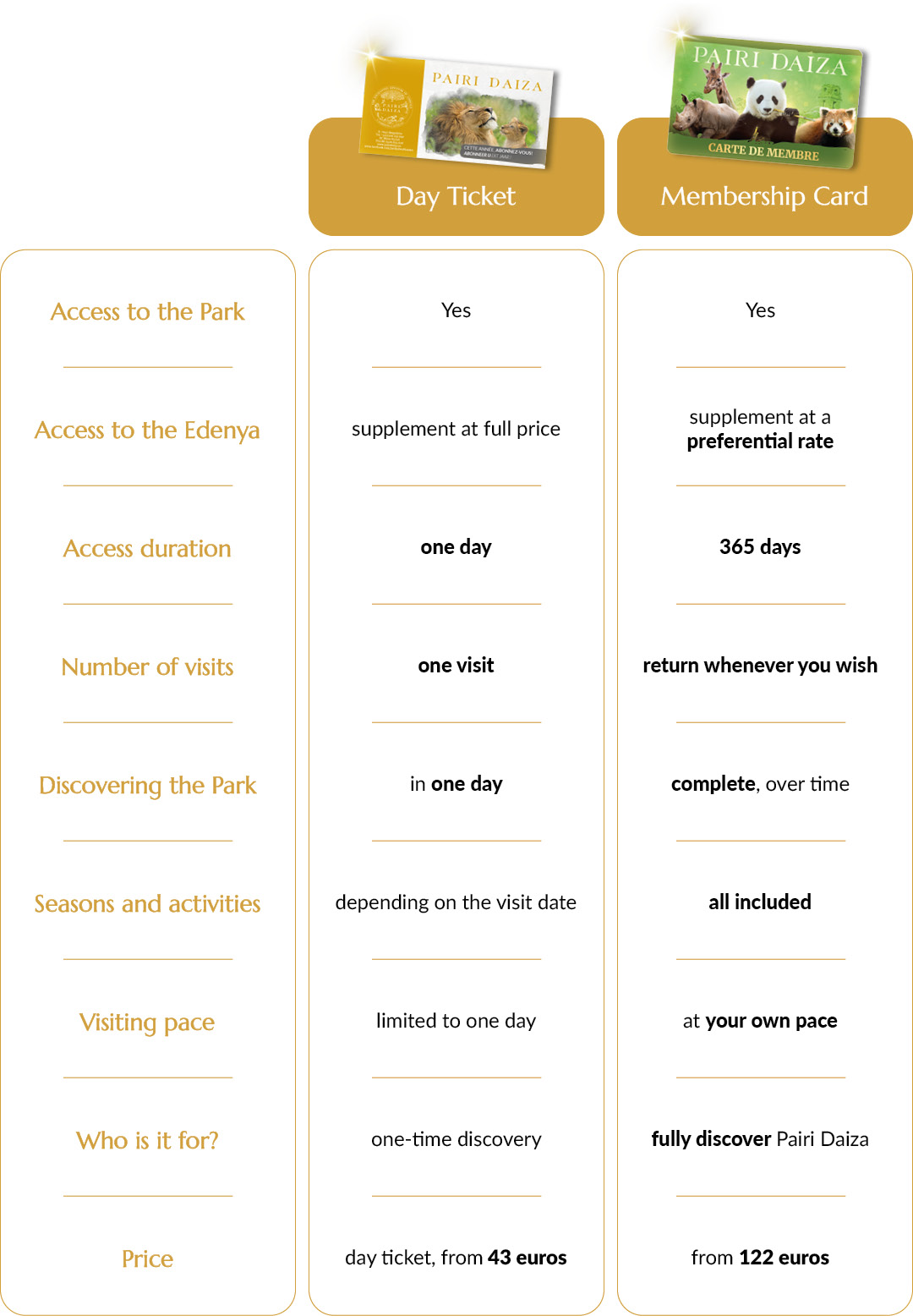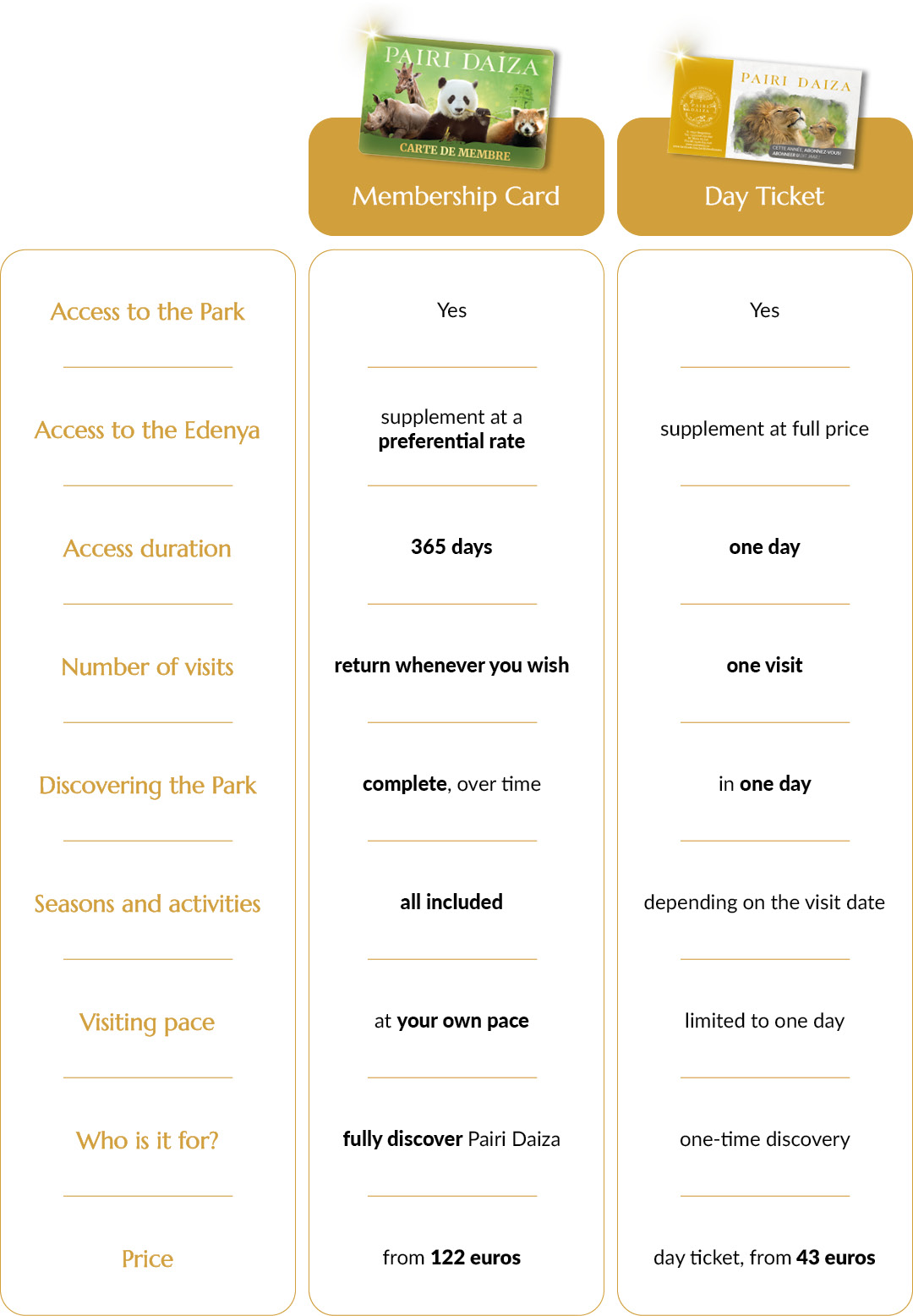 Choose the option that best suits your desire to discover Pairi Daiza
